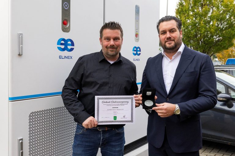 Elinex Power Solutions kreeg vorige week woensdag de zilveren ondernemerspenning uit handen van wethouder Henk van Os.