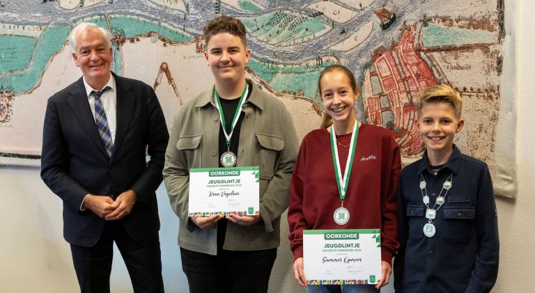 De veertienjarige Summer Opmeer en de zestienjarige Koen Vogelaar kregen woensdag 12 november het Ridderkerkse jeugdlintje.