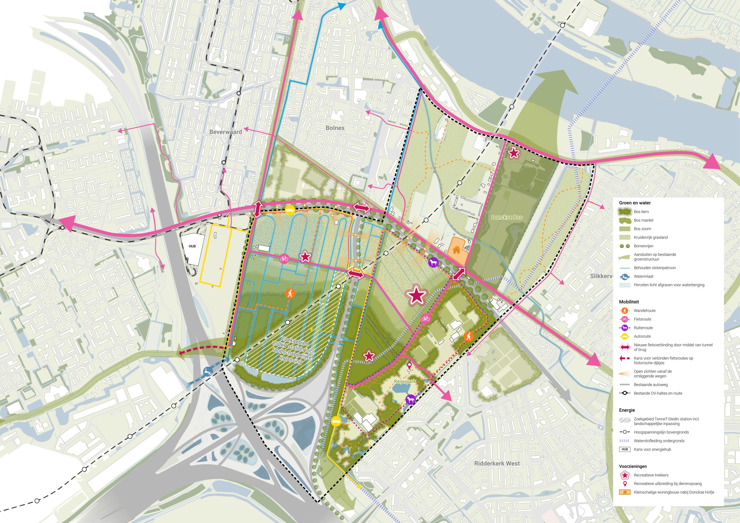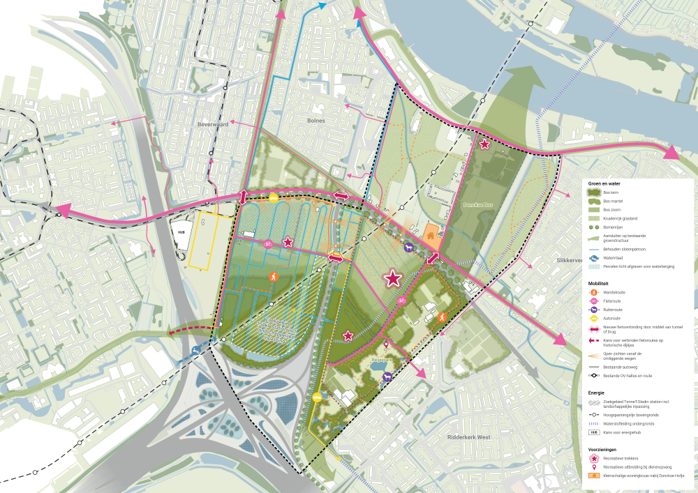 Voor de polders Slikkerveer – Bolnes heeft de gemeente Ridderkerk plannen voor recreatie en natuur. De polder Bolnes-Zuid is ook de meest logische locatie voor het realiseren van een hoogspanningsstation door TenneT en Stedin en een droge waterberging door Waterschap Hollandse Delta (WSHD). Deze zijn nodig om voldoende elektriciteit te kunnen blijven leveren voor dit deel van IJsselmonde en om zowel delen van Rotterdam-Zuid als Ridderkerk droog te houden bij grote regenbuien. Alle partijen zien mooie kansen om de grote regionale maatschappelijke opgaven van water en elektriciteit te combineren met recreatie en natuur. Voor de ontwikkeling van de polders Slikkerveer – Bolnes starten we met de polder Bolnes-Zuid.