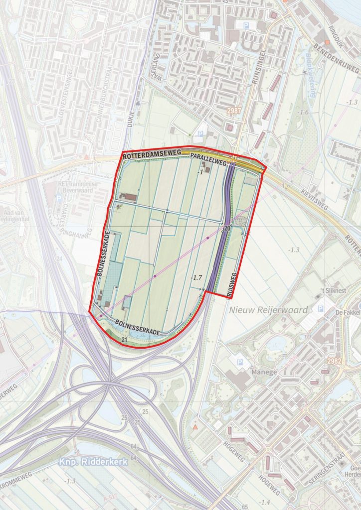 De gemeente Ridderkerk gaat samen met TenneT, Stedin, en het Waterschap Hollandse Delta een gebiedsprogramma opstellen voor polder Bolnes-Zuid. Dit gebied moet een plek worden waar mensen kunnen recreëren, waar water tijdelijk kan worden opgevangen bij wateroverlast en waar ruimte is voor een nieuw hoogspanningsstation. Met een gebiedsprogramma leggen we vast hoe het gebied zich in de toekomst moet ontwikkelen. Het gaat om het rood omlijnde gebied op het kaartje.